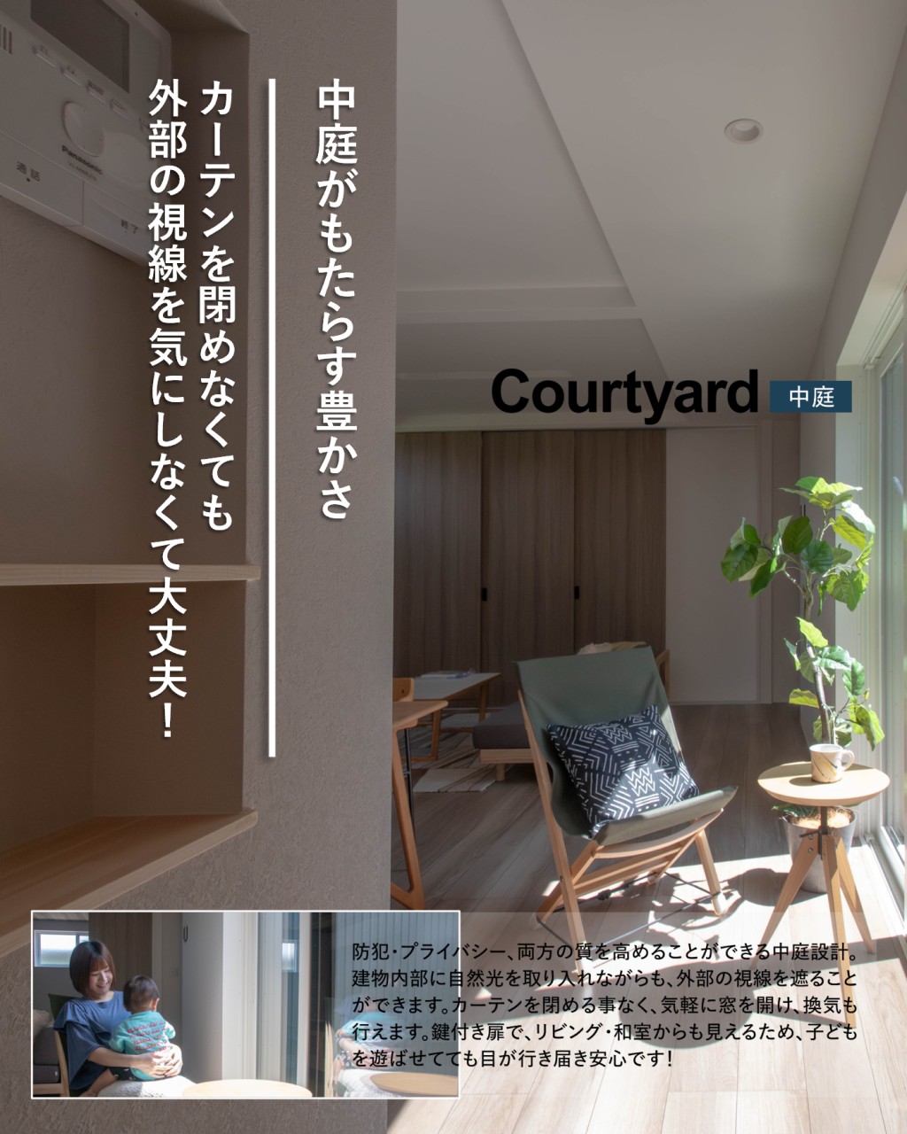 - 防犯・プライバシー両方の質を高めることができる中庭